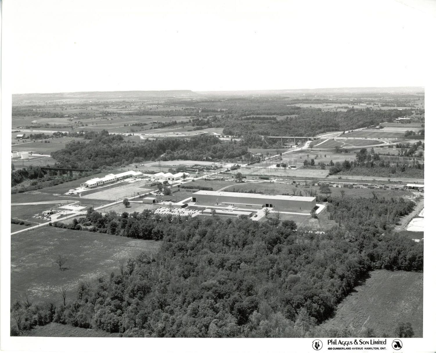 DescriptionBlack and white photograph of the intersection of Speers Road and Bronte Road; Bronte Road can be seen running up towards the QEW; The Kazer Manufacturing Newman Steel industrial building can be seen in the center on the northeast corner of Speers Road and Bronte Road; The QEW bridge over Twelve Mile Creek can be seen on the proper right of Bronte Road; In the bottom proper left corner "Phill Aggus & Son Limited 450 Cumberland Avenue Hamilton, Ont."