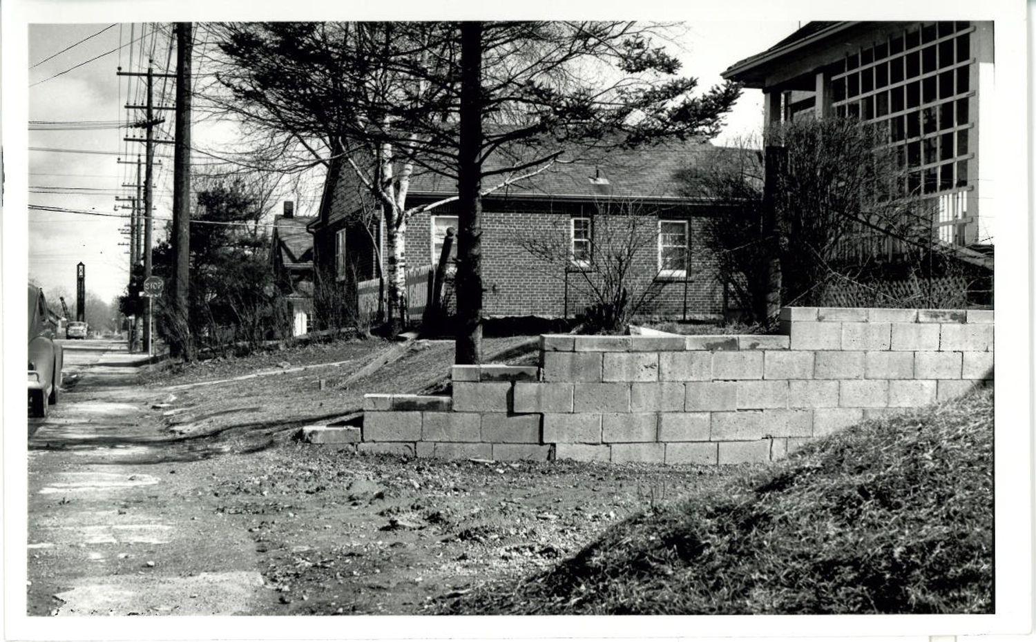 DescriptionBlack and white photograph of the south side of Rebecca Street looking towards Chisholm Street; Residential houses along the south side of Rebecca Street can be seen; there are various trees along the street; the stop sign on the south west corner of Rebecca Street can be seen on the proper right
