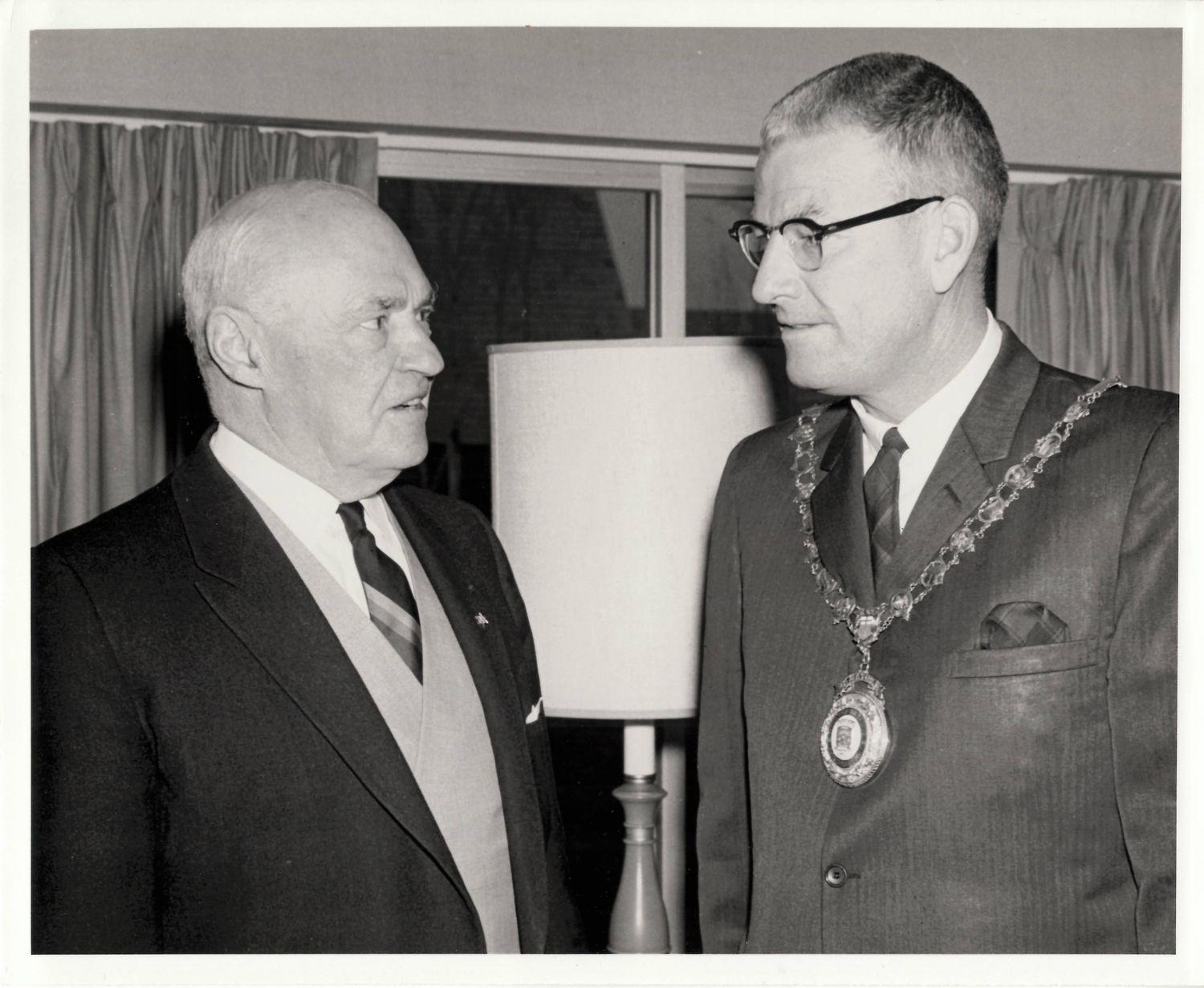 Lieutenant Governor of Ontario Earl Rowe standing with Mayor F. M. Anderson