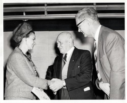 Reeve Herb Merry (R) introducing Mrs. Desnoyers (Mayor of Droval's Wife) to Hon. Earl Rowe
