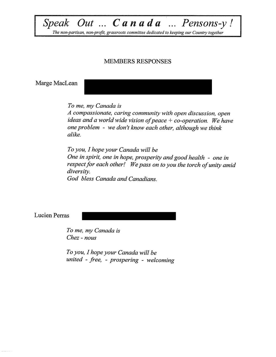 DescriptionSpeak Out...Canada...Pensons-y! Member responses from Marge Maclean and Lucien Perras