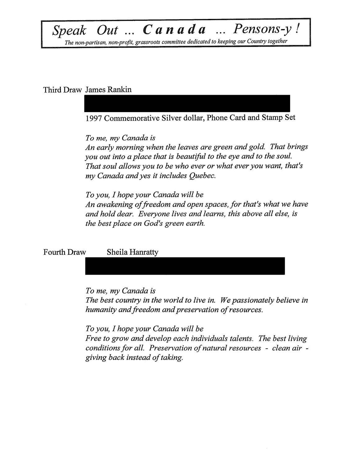 DescriptionWinners of the Speak Out...Canada...Pensons-y! contest and responses from James Rankin and Sheila Hanratty