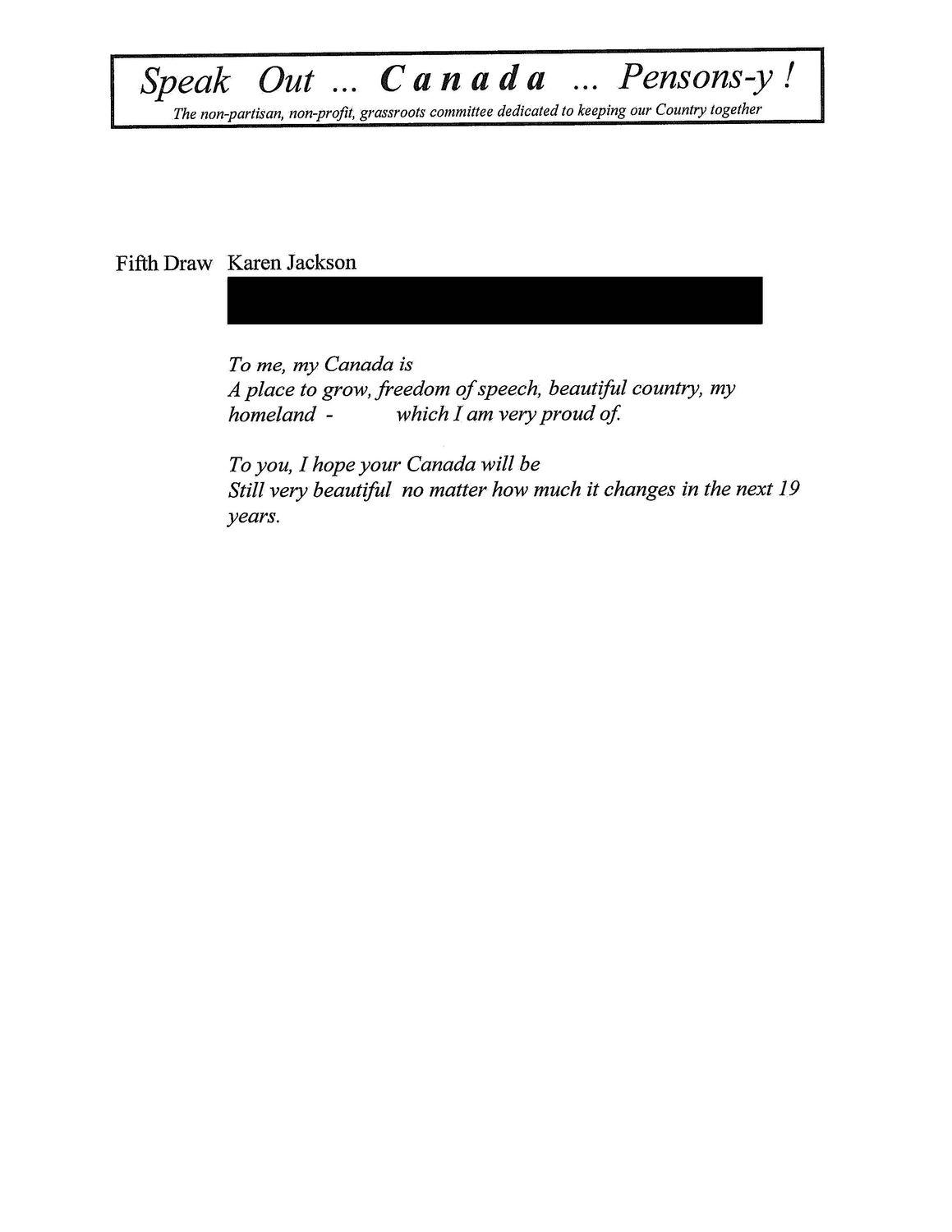 DescriptionWinners of the Speak Out...Canada...Pensons-y! contest and responses from Karen Jackson