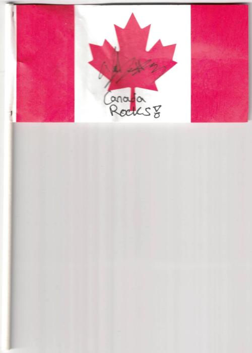 A small Canada paper flag attached to a 16 x 7.5 cm