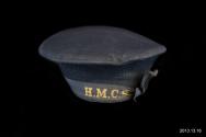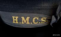 DescriptionBlack naval hat with black ribbon and "HMCS" in gold.