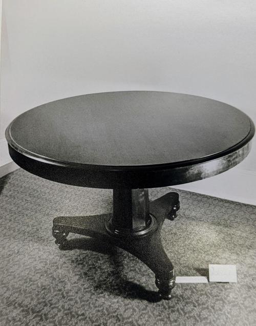 Dining table, round top, tripod pedestal base