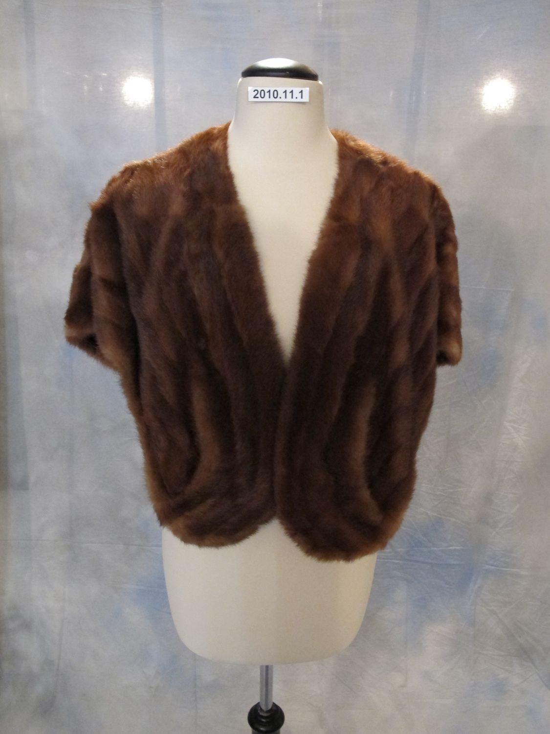 Fur stole, brown, short sleeved.