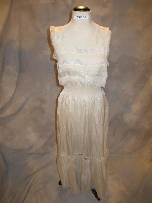 Cream rayon wedding nightgown with shirred elastic waist.