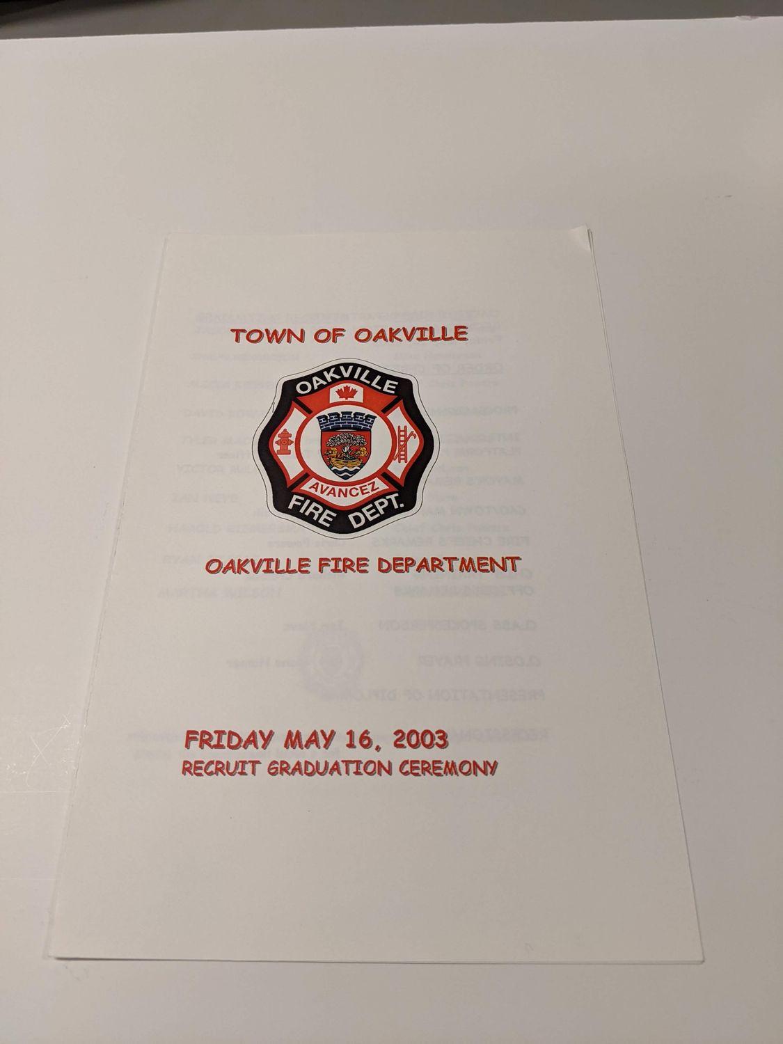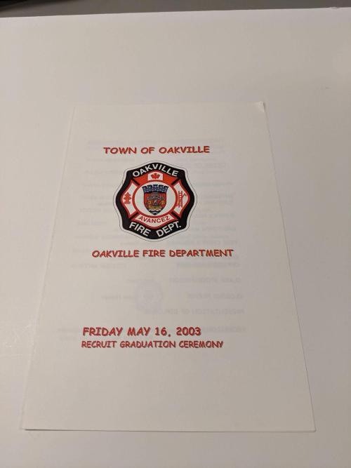 Oakville Fire Department Recruit Graduation Ceremony Program, November 28, 2003
