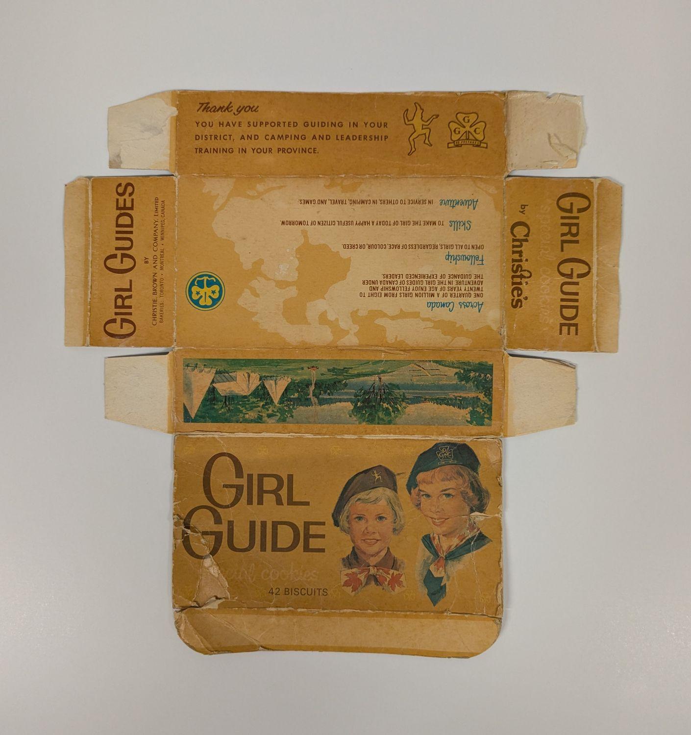 Girl Guides gold cookie box, held 42 busicuits.
