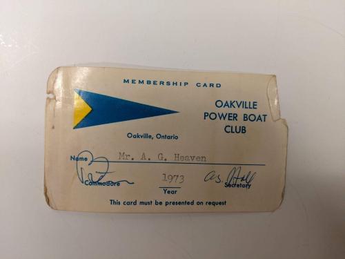 Oakville Boat Club License, Arthur Heaven.