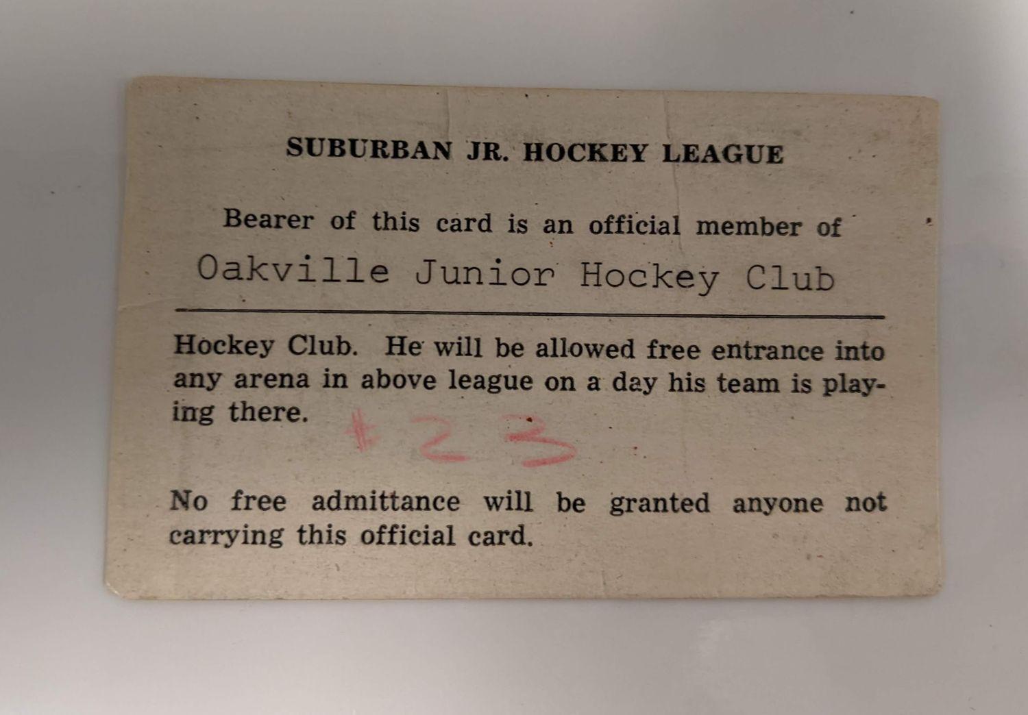 Oakville Blades player pass, Junior Hockey Club.