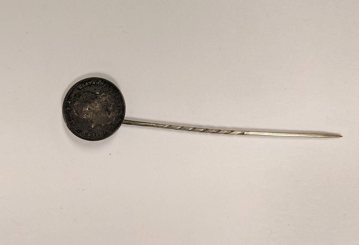Tie pin, coin detail.