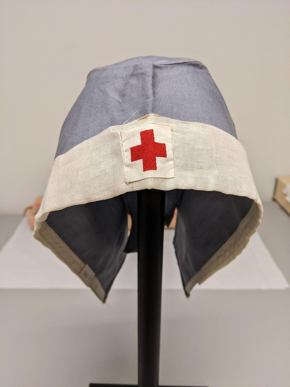 Nurse's WWII blue cape with white band and red cross ensignia.