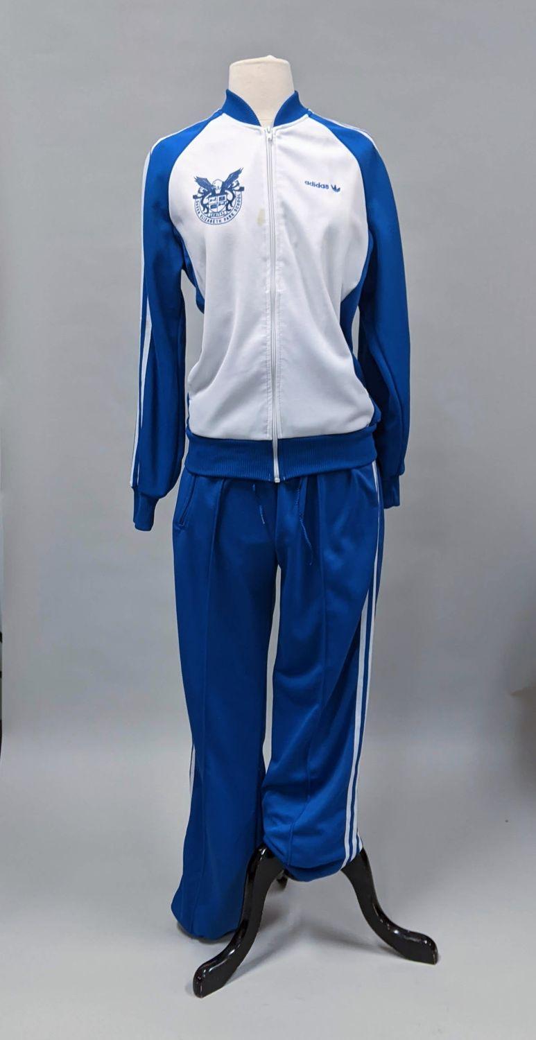 Blue and white Adidas women's track suit. Queen Elizabeth Park School band.