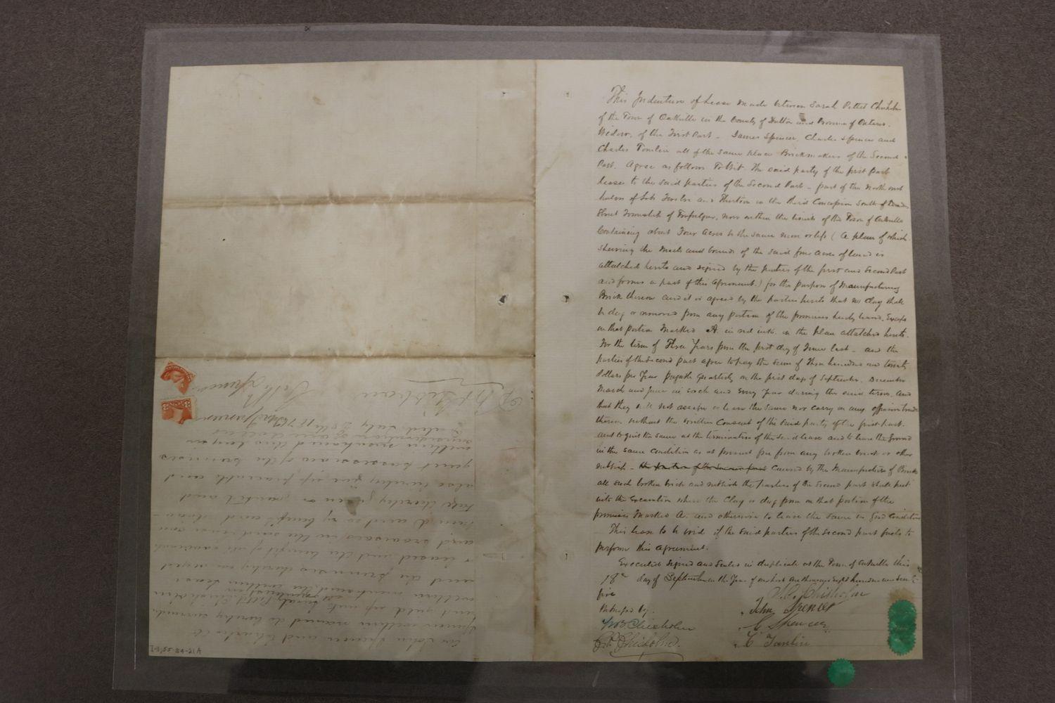 DescriptionHandwritten Indenture of Lease; between Sarah Pettit Chisholm (first part), and James Spencer, Charles Spencer and Charles Tomlin; September 18, 1875; map of the property is included; two pages.