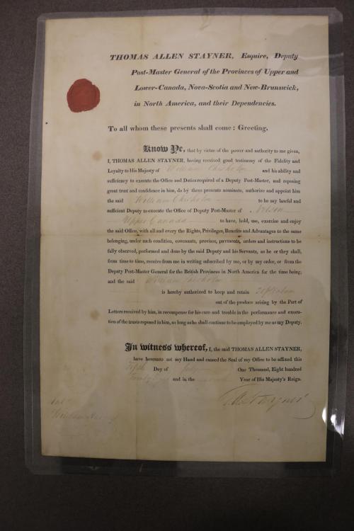 DescriptionNotice;William Chisholm appointed Post Master of Oakville; dated July 5, 1835.