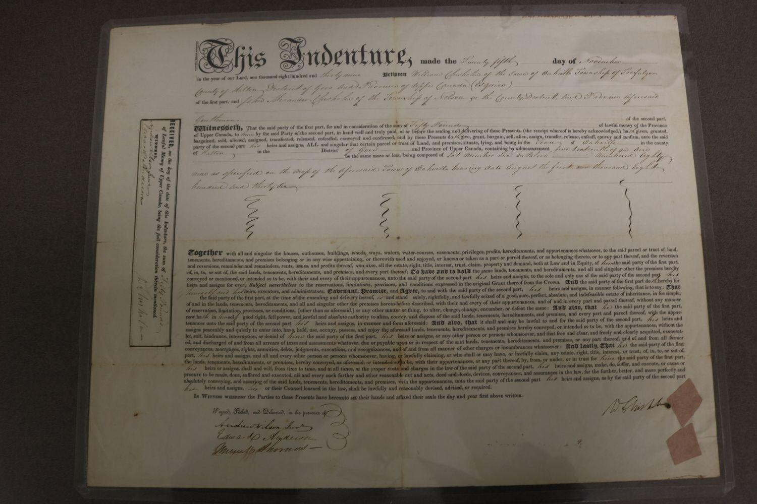 DescriptionPrinted and handwritten indenture of bargain and sale; of Lot No. 6, Block 89 from William Chisholm to John Alexander Chisholm; dated November 25, 1839.