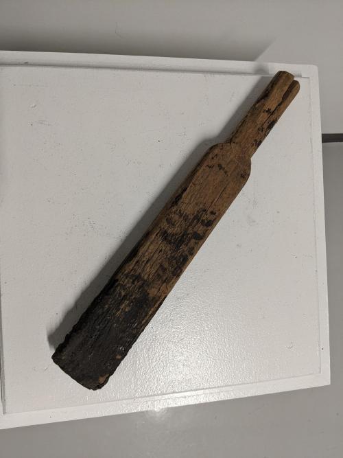 Wooden multi purpose tool could have been used for mixing or spreading.