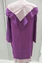 .2: coat - loose, 3/4 length coat with triangular collar, body of coat is purple, double collar, mauve and purple crepe, bands of faggotting down fronts, long sleeves.