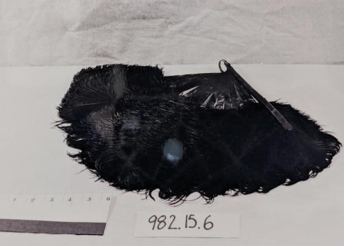 DescriptionBlack ostrich feather fan with tortoise shell sticks and guards, guards have raised nobs. Tortoise shell ring (broken)