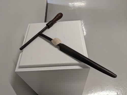 DescriptionOne wooden handle, iron blade, for enlarging holes in wooden pipes and wheel hubs.