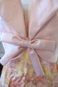 Stole, matching to dress, made from silk, pink with brushed silk flowers in yellow, orange and pink, metal eyelet hook and ring in facing corners to attach.