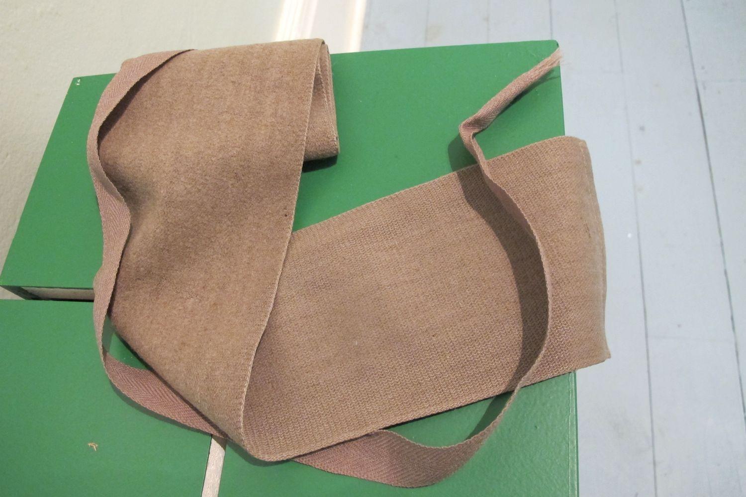 DescriptionTan coloured men's wool puttee (leg wrap for protection).