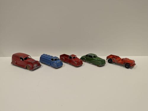 Set of push kiddie-cars, red (3) , green (1) and blue (1).