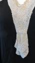 DescriptionDay dress, black silk voile with creme collar accent and sleeves, smocked panel at waist to unhemmed layered skirt with longer sides than front back mocked beaded voile tie at front with lace, sleeve cuffs also done in beaded cream voile with clasp fastening.